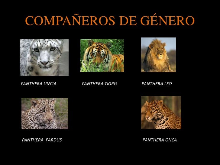 - Género: Además de los leones, el tigre, el jaguar, el leopardo, ..., pertenecen al género Panthera.